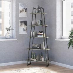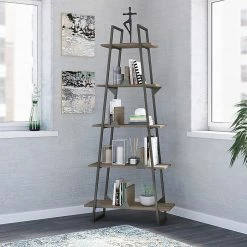 Bush Furniture Refinery 5-Shelf 72″H A-Frame Etagere Bookcase, Dark Gray Hickory (RFB132GH-03)