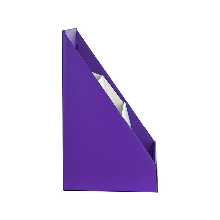 - Made from recyclable corrugated cardboard material, Magazine File Holder is sturdy enough to hold various classroom and office supplies such as folders, files, magazines, catalogs, documents, mails, CDs, DVDs, and more