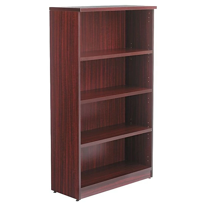 Woodgrain laminate bookcase features a contemporary design that fits perfectly in professional environments. Commercial-grade side panels with protective 3 mm edge banding provide excellent dent- and scratch-resistance. 11 3/4″ deep (three adjustable) shelves accommodate a wide range of materials. Top panel is 14″ deep for door installation. Tight, dowel and cam-lock assembly provides a clean look while ensuring overall stability.