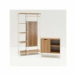- Two open shelves (one fixed, one adjustable) and one closed cabinet shelf for books and other essentials