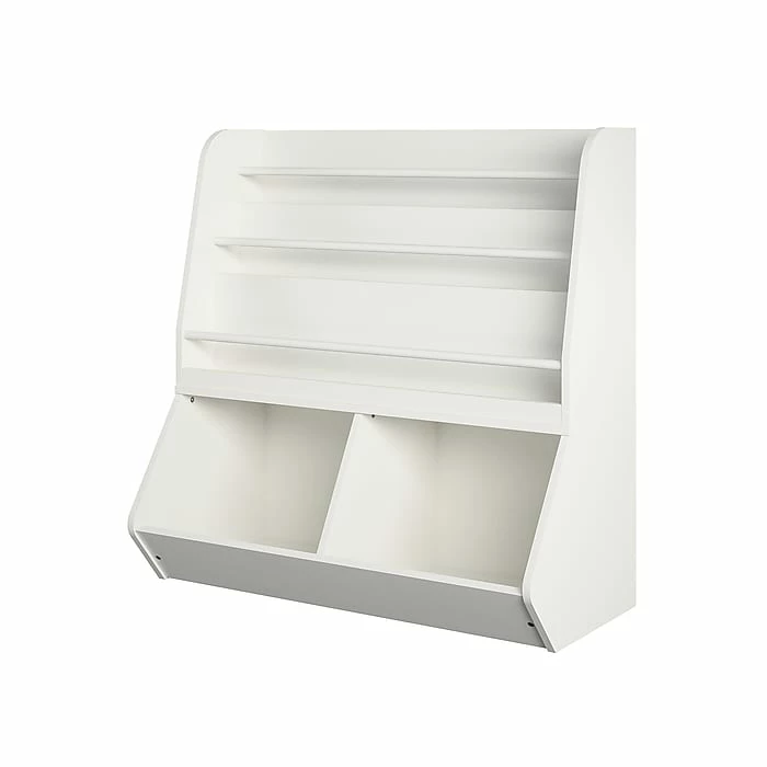 Don’t fight with all the clutter in your child’s room: simply store away their toys and games in the Ameriwood Tyler book and toy storage. This toy storage is great for storing stuffed animals, toys, and books and features curved corners for your child’s safety. Keep everything organized in the two large open compartments, and display their favorite books on the top three shelves for easy access. Each bookshelf features a rod to keep books in place and allow easy access for kids. White laminate pairs with both boys’ and girls’ rooms. The book and toy storage meets the CPSIA Juvenile testing requirements to ensure your child’s safety. The toy storage ships flat to your door and requires assembly upon opening. Two adults are recommended to assemble.
