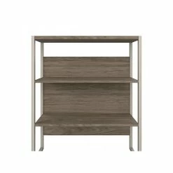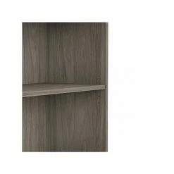 The Bush Business Furniture Hybrid tall etagere bookcase offers a stylish, long-lasting storage and display solution for the modern professional. Organize books and other reference materials, or decorate your workspace to give it a personal touch on shelves that support up to 50 lbs. each. The lower section contains one fixed shelf for stability and another that can be raised or lowered to accommodate items of various sizes. The open shelves are perfect for storing a small library or showcasing your favorite plants, pictures, and knickknacks. The tall bookcase’s stable design and included wall attachment hardware make it a safe choice for use in virtually any home or professional office environment. Find the perfect look for your space with five contemporary finish options: black walnut, modern hickory, platinum gray, storm gray, and white. This five-shelf bookcase has been meticulously tested to meet or exceed ANSI/BIFMA quality standards for safety, durability, and performance and is backed by the Bush Business Furniture 10-year manufacturer warranty. See the full Bush Business Furniture Hybrid collection for coordinating items to enhance your workspace as needed, including computer desks, file cabinets, and storage cabinets (coordinating items sold separately). American-made with US and imported parts.
