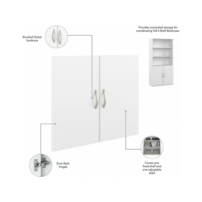 - Bundle includes a tall five-shelf bookcase and half-height door kit