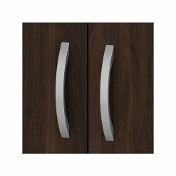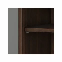 The Bush Business Furniture Hybrid tall five-shelf bookcase with doors offers a stylish, long-lasting storage and display solution for the modern professional. Organize books and other reference materials, or give your workspace a personal touch with pictures and decorations on shelves that support up to 50 lbs. each. Two shelves are fixed for stability, while three can be raised or lowered to accommodate items of various sizes. Cabinet doors conceal the two lower shelves for the materials you want to be kept in order but out of sight. The tall bookshelf’s stable design and included wall attachment hardware make it a safe choice for use in virtually any home or professional office environment. Find the perfect look for your space with five contemporary finish options: black walnut, modern hickory, platinum gray, storm gray, and white. This tall bookcase cabinet has been meticulously tested to meet or exceed ANSI/BIFMA quality standards for safety, durability, and performance and is backed by the Bush Business Furniture 10-year manufacturer warranty. See the full Bush Business Furniture Hybrid collection for coordinating items to enhance your workspace as needed, including computer desks, file cabinets, and storage cabinets (coordinating items sold separately). American-made with US and imported parts.