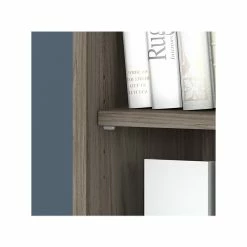- Bookcase with doors made of laminate over engineered wood in a modern hickory finish