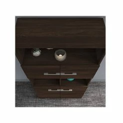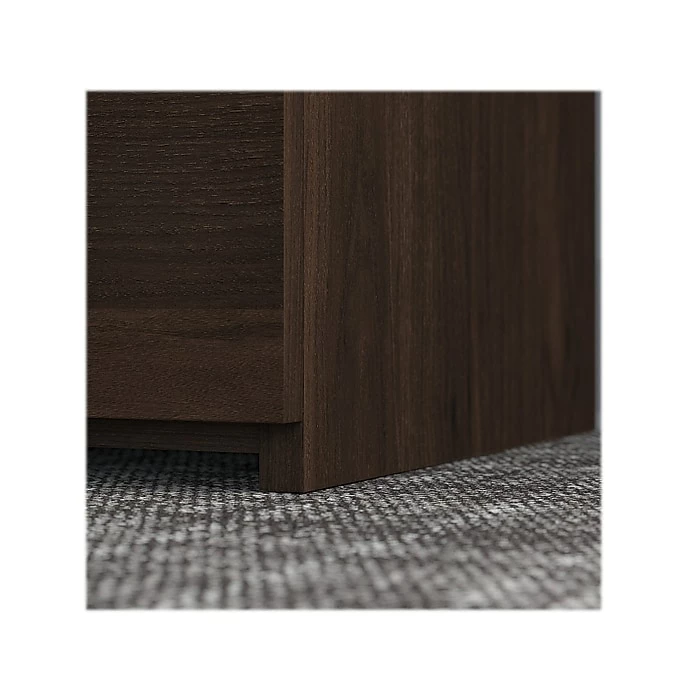 - Standard bookcase with doors is made of thermally fused laminate over composite wood in a black walnut finish