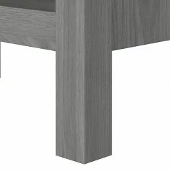 - Six-cube bookcase is made of laminate over engineered wood in modern gray finish