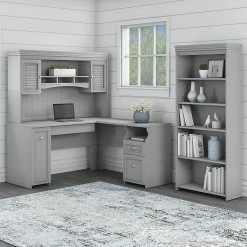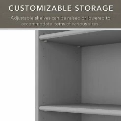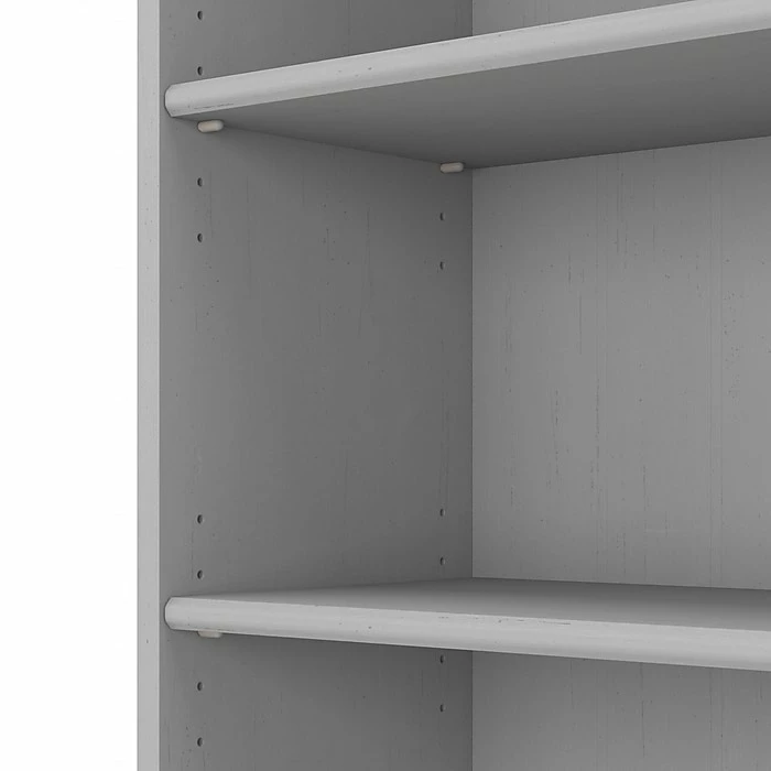 Bring a slice of modern farmhouse styling into any home office or living space with the Bush Furniture Fairview tall five-shelf bookcase. Three adjustable shelves move up and down to accommodate books and decorations of various sizes while two fixed shelves provide extra stability. Each shelf supports up to 50 lbs., so organizing a collection of paperback and hardcover books is no problem. This bookcase offers plenty of vertical storage to keep your personal library in order without taking up too much floor space. Use a single bookcase on its own, or place a set of two or more side by side for even more storage and display capacity. This farmhouse bookcase is tested to meet ANSI/SOHO quality standards for safety and performance and is backed by a 6-year manufacturer warranty. See the full collection for coordinating items to complete your space with relaxed cottage styling.
