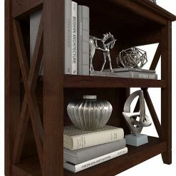 The Bush Furniture Key West small two-shelf bookcase offers a practical storage and display solution that gives your home a touch of casual style. This small bookshelf features a compact, versatile design that makes it a perfect choice for use in a home office, living room, entryway, or virtually any other residential space. One fixed shelf and one adjustable shelf accommodate books, reference materials, and decorations of various sizes. Each shelf supports up to 35 lbs., so you can store and display larger items with confidence. A post leg design and X-pattern accents convey a casual appearance that works well with cottage, coastal, and modern farmhouse style. This small bookcase has been tested to meet ANSI/SOHO quality standards for safety and performance and is backed by the Bush Furniture 1-year manufacturer warranty. See the full collection for coordinating items available.