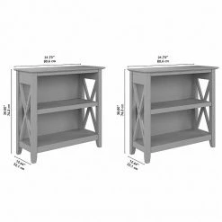 The Bush Furniture Key West small two-shelf bookcase offers a practical storage and display solution that gives your home a touch of casual style. This small bookshelf features a compact, versatile design that makes it a perfect choice for use in a home office, living room, entryway, or virtually any other residential space. One fixed shelf and one adjustable shelf accommodate books, reference materials, and decorations of various sizes. Each shelf supports up to 35 lbs., so you can store and display larger items with confidence. A post leg design and X-pattern accents convey a casual appearance that works well with cottage, coastal, and modern farmhouse style. This small bookcase has been tested to meet ANSI/SOHO quality standards for safety and performance and is backed by a 1-year warranty. See the full collection for coordinating items available.
