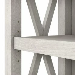 The Bush Furniture Key West tall five-shelf bookcase is a perfect way to show off your favorite artwork, photos, plants, and more. Three adjustable shelves accommodate items of various sizes while two fixed shelves provide stability. Each shelf supports up to 50 lbs. so you can store your personal library and display decorations with confidence. Stylish touches include unique X-pattern accents on the side panels as well as a sturdy and attractive post leg design. This five-tier bookcase includes wall attachment hardware for family-friendly safety and security in any home office or living room. A perfect choice for homes that embrace cottage, coastal, and farmhouse decor, the Bush Furniture Key West collection includes a variety of coordinating items to expand your space as needed. This tall bookcase is tested to meet ANSI/SOHO quality standards for safety and performance and is backed by a 1-year manufacturer warranty.