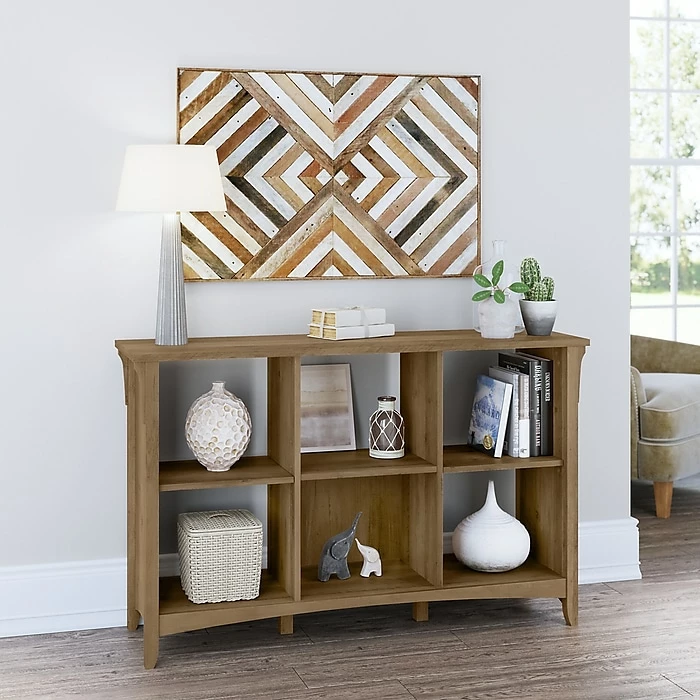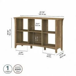 An organized home has never felt so right. Decorate your family home, cottage, apartment, or dorm room with a casual cube bookcase that features attractive wood accents, tapered legs, and curved base rails inspired by timeless Mission styling. Six cubby shelves are perfect for organizing home office supplies or brightening up any room with pictures and decorations. Two adjustable shelves offer flexible storage to accommodate items of various sizes. Each shelf supports up to 30 lbs., so storing a small collection of books or displaying larger decorations is no problem. This six-cube bookcase is tested to meet ANSI/SOHO quality standards for safety and performance and is backed by a 1-year manufacturer’s warranty. Complete your space with coordinating items from the Salinas collection.
