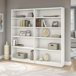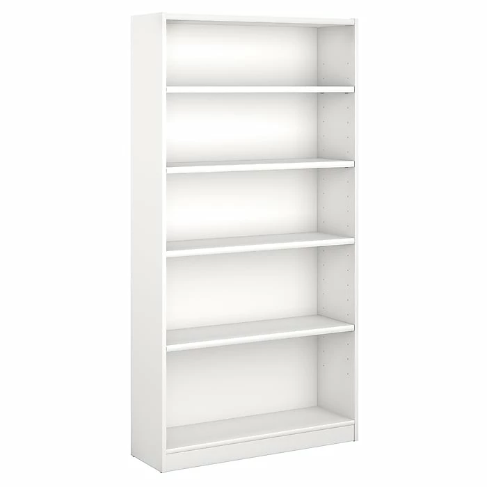 The Bush Furniture Universal 5 Shelf Bookcase features two fixed shelves for added stability and three adjustable shelves for storage flexibility. Personalize your home or office with books, photos, plants and decorative accents with sturdy 1 inch thick shelves. Design a complete wall unit or place coordinating bookcases anywhere in your interior with seven finishes and three height options. Family-friendly wall attachment hardware included. You’ll find many uses for this heavy-duty tall Bookcase in your home office, bedroom or small business. Solidly constructed, the 5 Shelf Bookcase meets ANSI/BIFMA standards for safety and performance. Backed by a 1 Year Warranty.