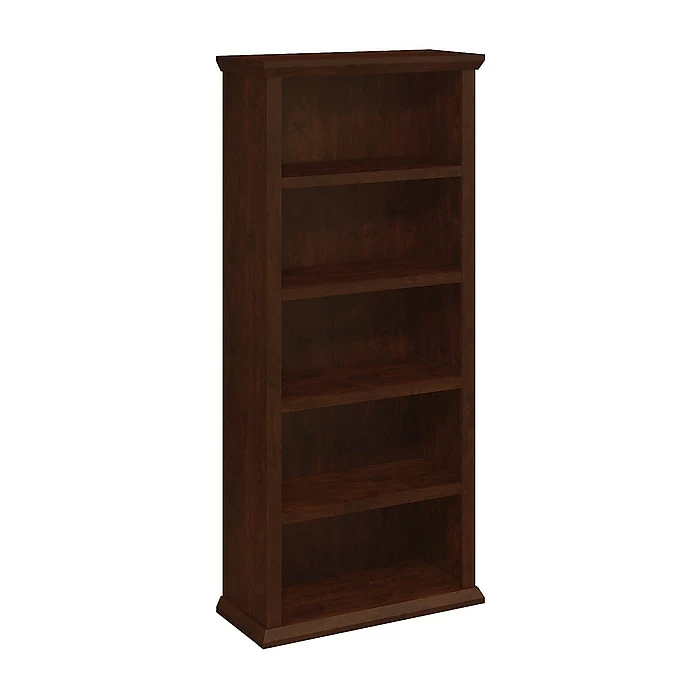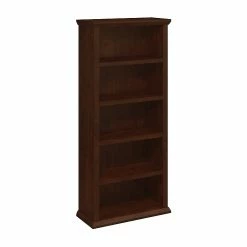The Yorktown 5-Shelf Bookcase by Bush Furniture melds your home office storage and display needs together to create a beautiful and functional space. Comes with two fixed shelves for stability and three adjustable shelves so you can display books, collect cables, and artwork where you want them most. See the full line for coordinating items available, all backed by the Bush Furniture 1-Year manufacturer’s warranty.