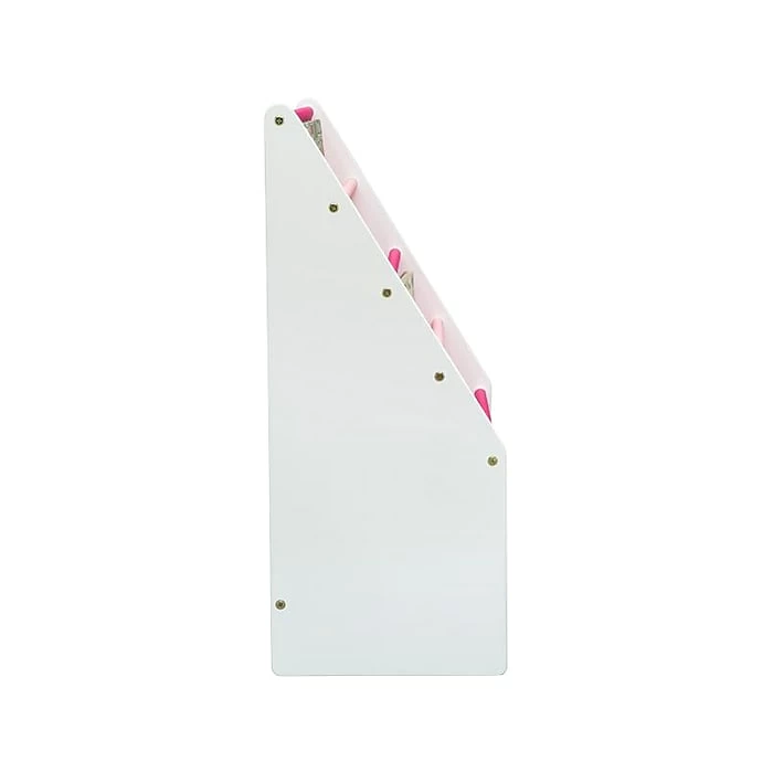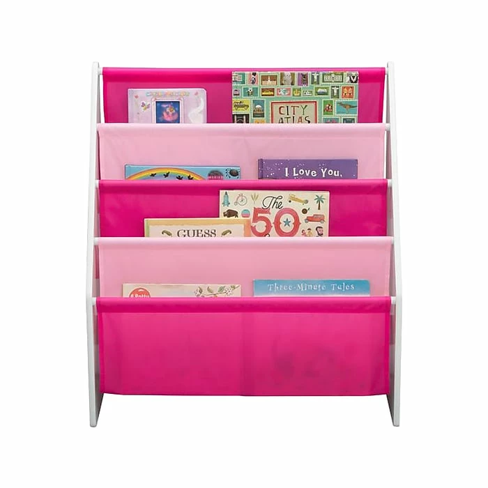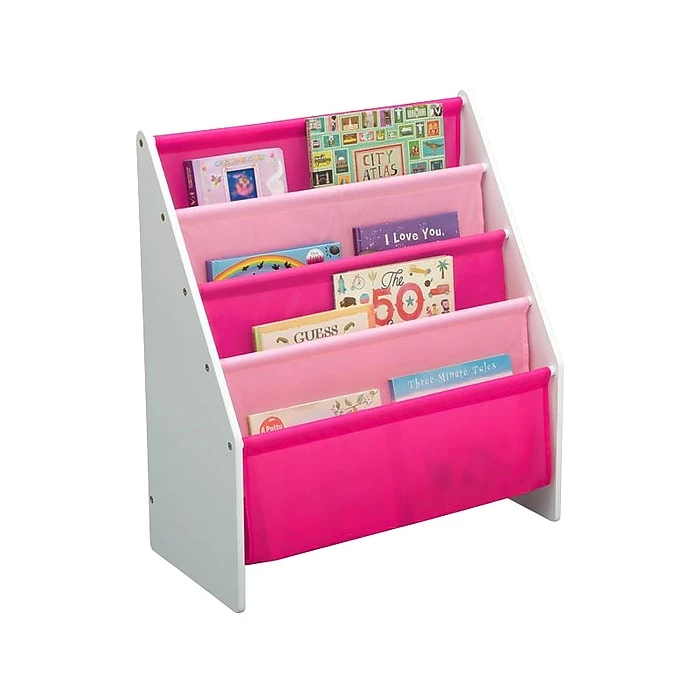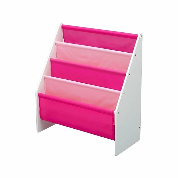 - Four pink soft fabric storage pockets offer the perfect storage space for books of all shapes and sizes, magazines, folders, binders, or coloring books