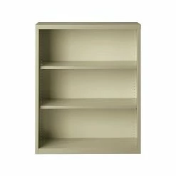 - Three-shelf steel bookcase in baked putty enamel finish perfect for schools, libraries, and offices