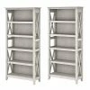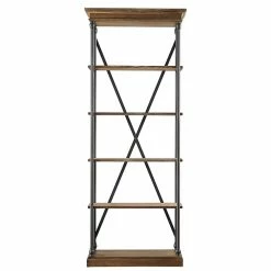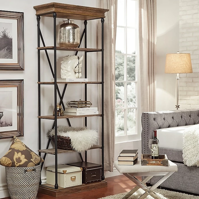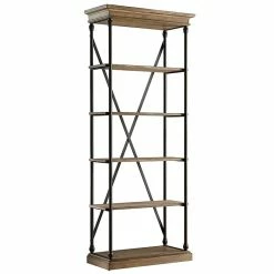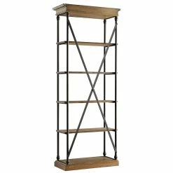 Available in multiple finishes, this bookcase can easily complement your existing decor. The five fixed shelves are supported by a powder-coated metal frame for added strength and stability. Constructed from poplar wood and elm veneers, this shelving is a stylish addition to any room.