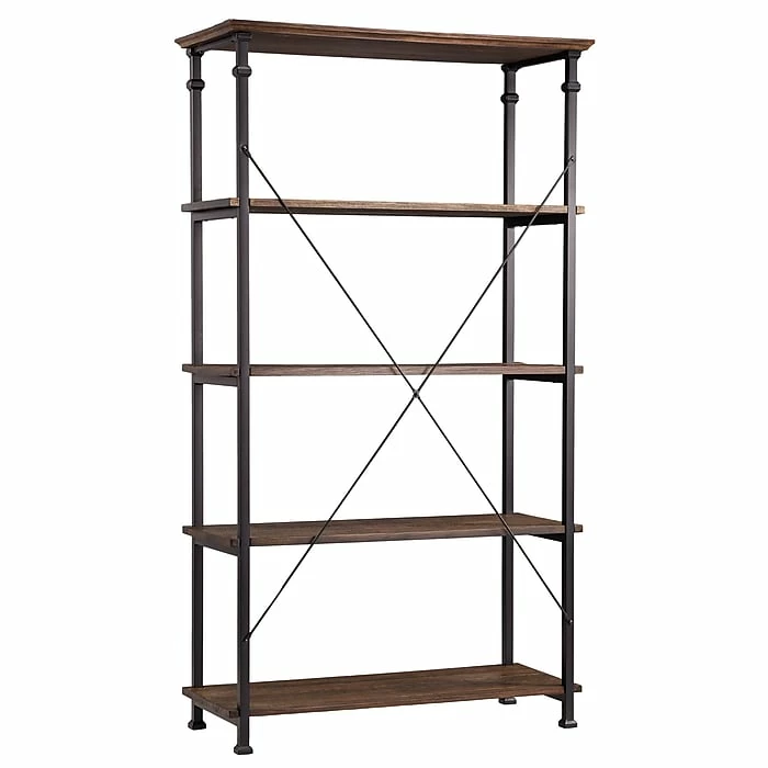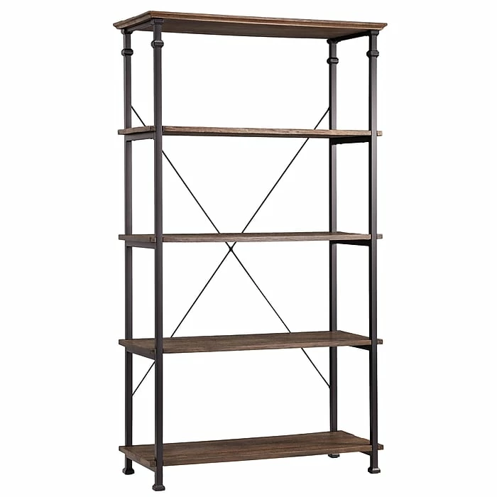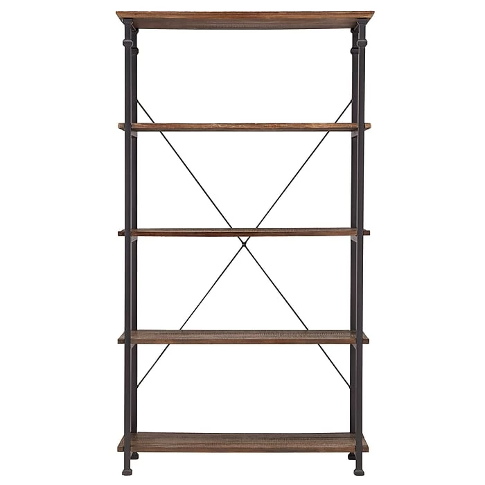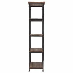 Your sense of home decor can truly shine, thanks to the minimal nature of this industrial bookcase. Clean, thin lines make your curios, art and books the focal point of the shelves. The harmonious mix of metal and wood looks subtly lovely in a modern home. Open ends are simple to clean and dust.