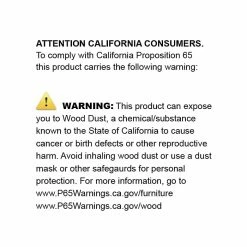 - ⚠ WARNING: This product can expose you to Wood Dust, a chemical/substance known to the State of California to cause cancer or birth defects or other reproductive harm. Avoid inhaling wood dust or use a dust mask or other safegaurds for personal protection. For more information, go to www.P65Warnings.ca.gov/furniture www.P65Warnings.ca.gov/wood
