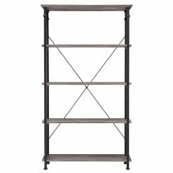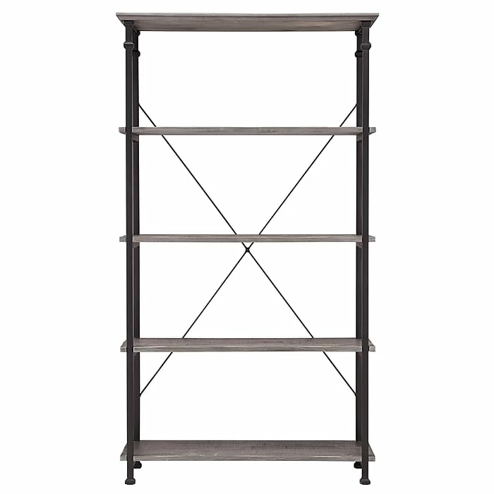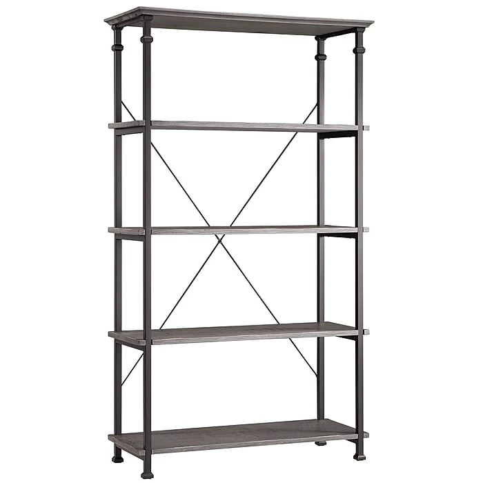 Your sense of home decor can truly shine, thanks to the minimal nature of this industrial bookcase. Clean, thin lines make your curios, art and books the focal point of the shelves. The harmonious mix of metal and wood looks subtly lovely in a modern home. Open ends are simple to clean and dust.