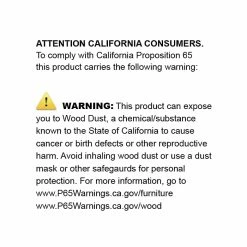 - ⚠ WARNING: This product can expose you to Wood Dust, a chemical/substance known to the State of California to cause cancer or birth defects or other reproductive harm. Avoid inhaling wood dust or use a dust mask or other safegaurds for personal protection. For more information, go to www.P65Warnings.ca.gov/furniture www.P65Warnings.ca.gov/wood