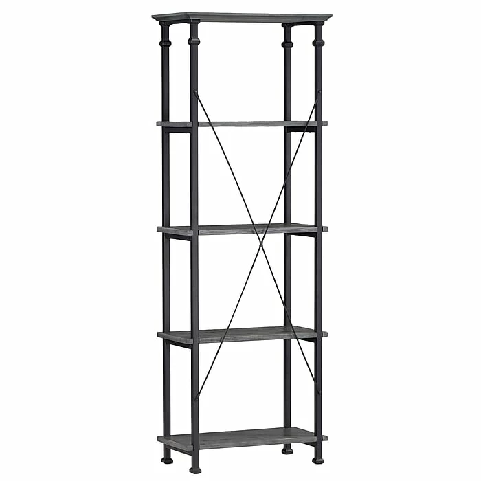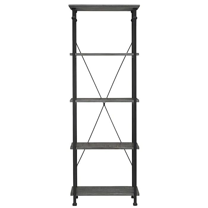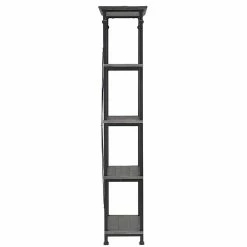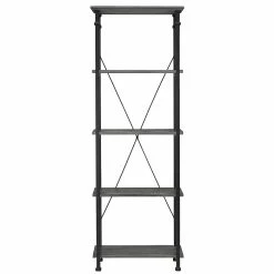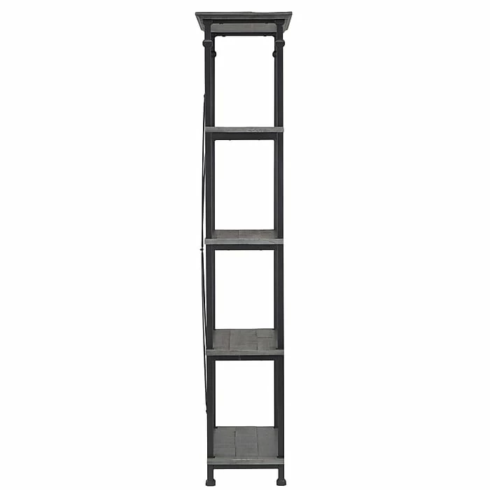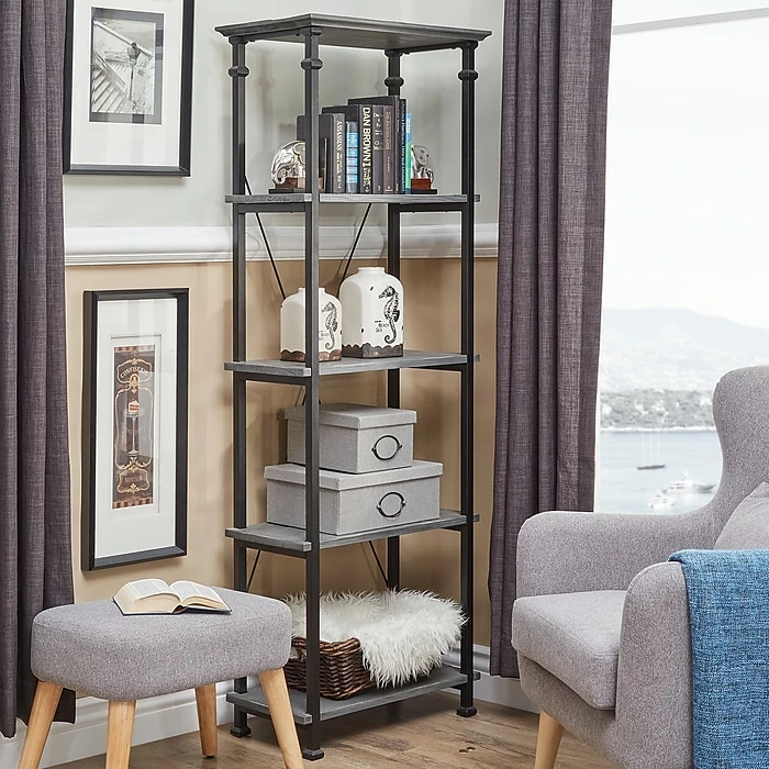 The tall and narrow shape is framed with black sanded metal, while the four pine wood shelves highlight an appealing industrial design. Four rubber feet prevent the rustic bookcase from sliding and protect your flooring from scratches.