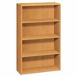 HON® 10700 Series 4-Shelf bookcase in harvest finish measures 57 1/8″ X 36″ X 13 1/8″ and has rounded corners.