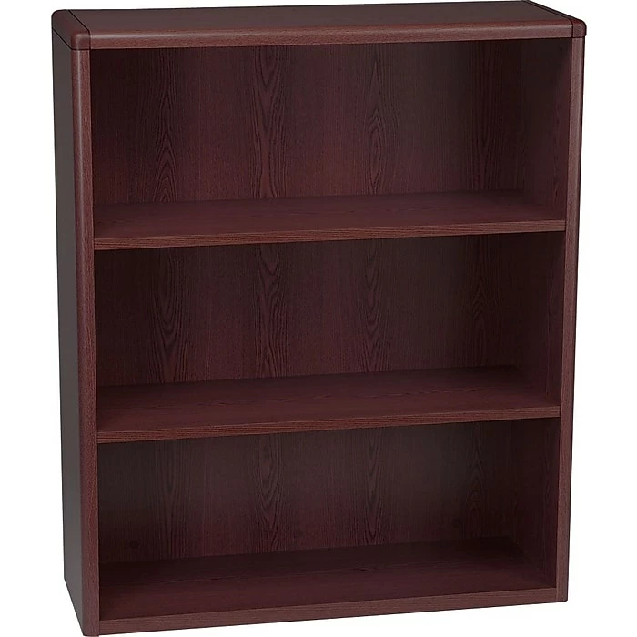 - Color: Mahogany; Material: High-Pressure Laminate; Shelf Count: 3; Overall Height: 43 3/8 in