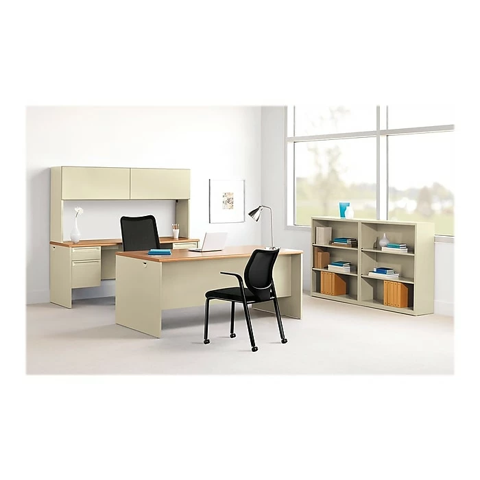- Standard bookcase comes in putty finish and provides plenty of storage space with durable steel construction