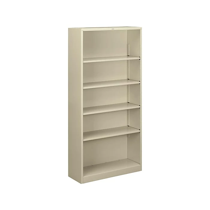 Stow a library of reference materials on the sturdy five shelves of this steel bookcase. Four shelves are adjustable to accommodate tall or short items, and this HON bookcase has a fully welded construction for excellent durability and withstanding demanding work environments.