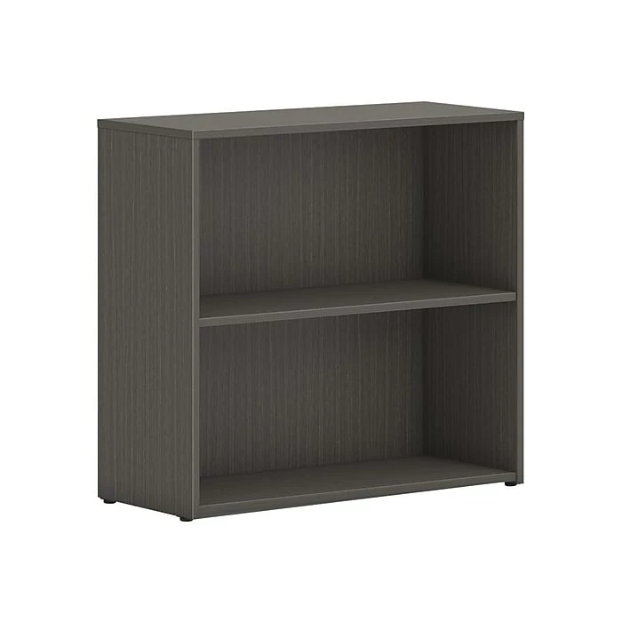 - Standard bookcase is made of woodgrain laminate and comes in slate teak finish
