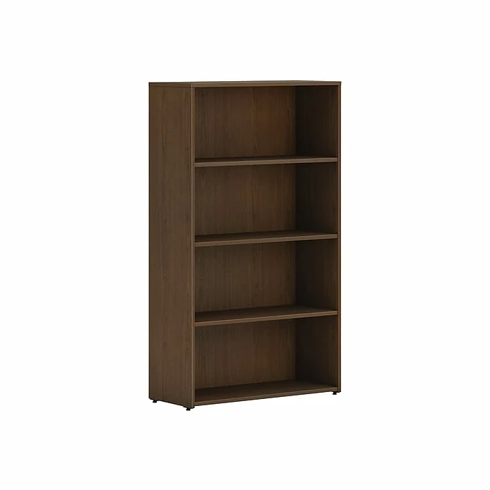 - Standard bookcase is made of woodgrain laminate and comes in sepia walnut finish