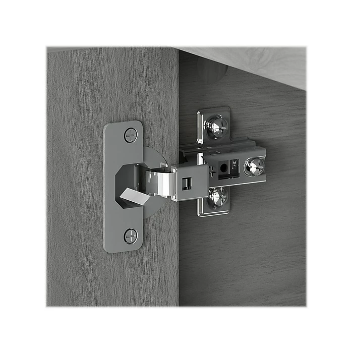 - Cabinet doors feature smooth Euro-style hinges for soft closing