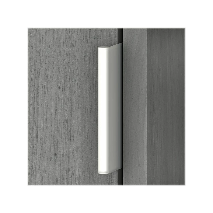 - Available in your choice of modern walnut, pure white, or modern gray finishes with brushed satin nickel hardware
