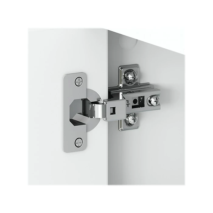 - Cabinet doors feature smooth Euro-style hinges for soft closing