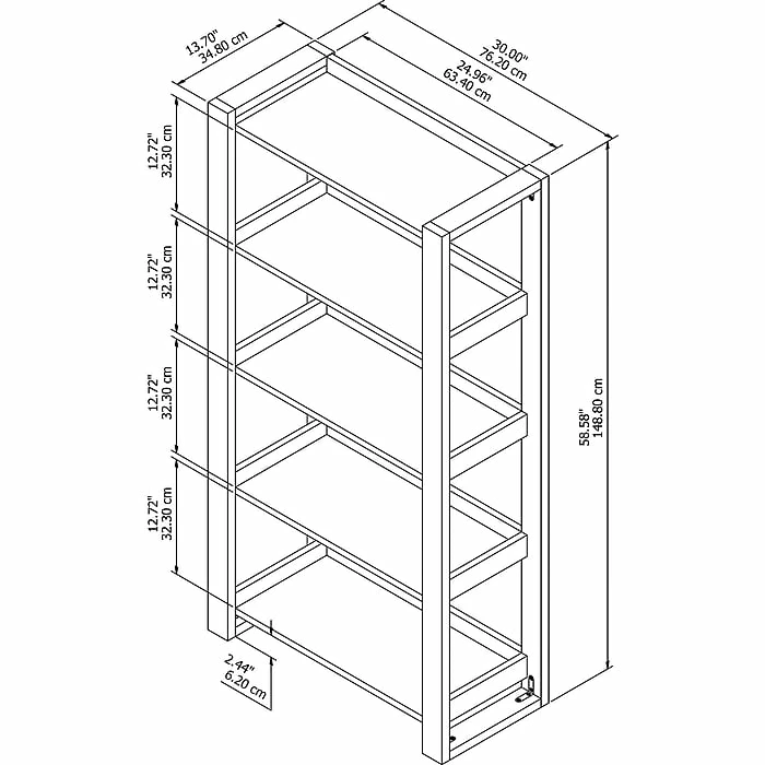 - Dimensions: 58.6″H x 30″W x 13.7″D