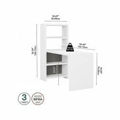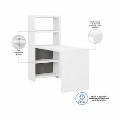 The Office by kathy ireland® Echo bookcase desk brightens the workspace, kitchen, or craft room with a contemporary charm and unique space-saving design. Equal parts fashion and function, the bookcase desk offers two adjustable shelves for decoration or organization. Appealing to the modern small business or remote worker, an elegant finish inspires while a thermally fused laminate surface endures years of everyday use. Set up your laptop on the desk as you store work materials, books, and all the accessories to make you feel at home on the bookcase shelves. An attractive fit for more than just the office, the clever bookcase desk provides a compact solution as a craft table or dining table. The bookcase desk comes with a 3-year manufacturer warranty and meets the ANSI/BIFMA quality standards. Celebrate your unique style and personality with Echo.