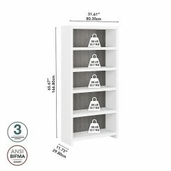 Give your workspace a charming bookshelf built with the style and strength to support the professionals of today. The Office by kathy ireland® Echo five-shelf bookcase offers wide lines and a commercial-grade construction designed to impress and endure. Fashionable yet functional, the contemporary bookcase combines two fixed and three adjustable shelves for convenient, flexible storage perfect for work materials, books, or decorative accents. Several elegant finishes coordinate with your favorite decor and accessories to create a homely feel wherever you work or live. From the Office by kathy ireland®, the five-shelf bookcase comes with a 3-year manufacturer warranty and meets the ANSI/BIFMA quality standards. Browse the full line of contemporary furniture to create an office set you’ll love for years to come. Celebrate your unique style and personality with the Echo collection.