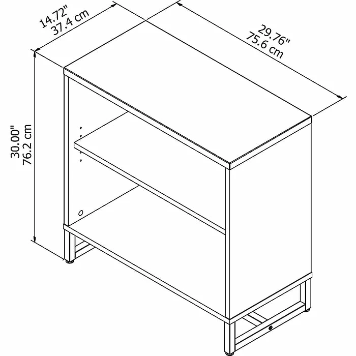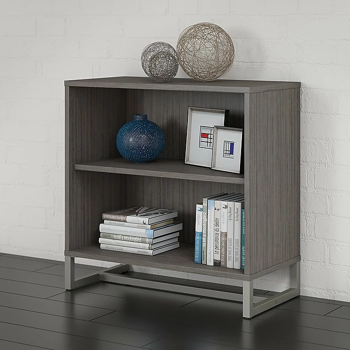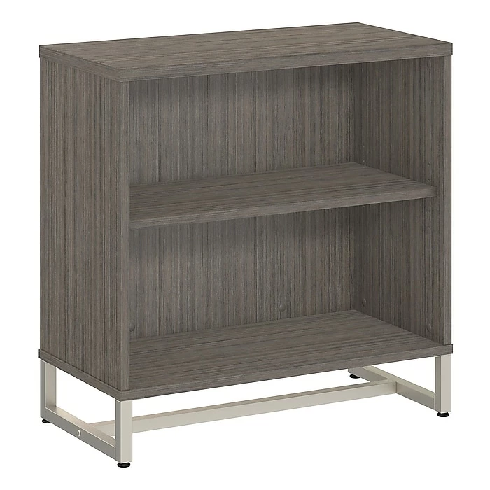 Embrace the unique styling of mid century modern design and enjoy ample storage with the Office by kathy ireland® Method Bookcase Cabinet. The 2 shelf bookcase offers a beautiful and durable titanium finished metal base. Constructed of 100% thermally fused laminate, the modern bookcase fends off scratches and stains to maintain the attractive design. Organize your favorite books and reference materials while using the adjustable shelf to fit items of varying sizes. The convenient Bookcase Cabinet matches the height of your Method Table Desk (sold separately) to expand your work surface when positioned side by side. From Office by kathy ireland® and Bush Business Furniture, the Method collection comes with a 6 Year Manufacturer’s Warranty and meets ANSI/BIFMA quality test standards. American made with U.S. and imported parts.