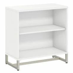 Embrace the unique styling of mid century modern design and enjoy ample storage with the Office by kathy ireland® Method Bookcase Cabinet. The 2 shelf bookcase offers a beautiful and durable titanium finished metal base. Constructed of 100% thermally fused laminate, the modern bookcase fends off scratches and stains to maintain the attractive design. Organize your favorite books and reference materials while using the adjustable shelf to fit items of varying sizes. The convenient Bookcase Cabinet matches the height of your Method Table Desk (sold separately) to expand your work surface when positioned side by side. From Office by kathy ireland® and Bush Business Furniture, the Method collection comes with a 6 Year Manufacturer’s Warranty and meets ANSI/BIFMA quality test standards. American made with U.S. and imported parts.