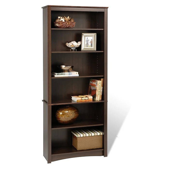 Prepac™ Espresso 6 shelf bookcase is constructed from high quality laminated composite woods and has an approximate weight of 31.5 lbs.