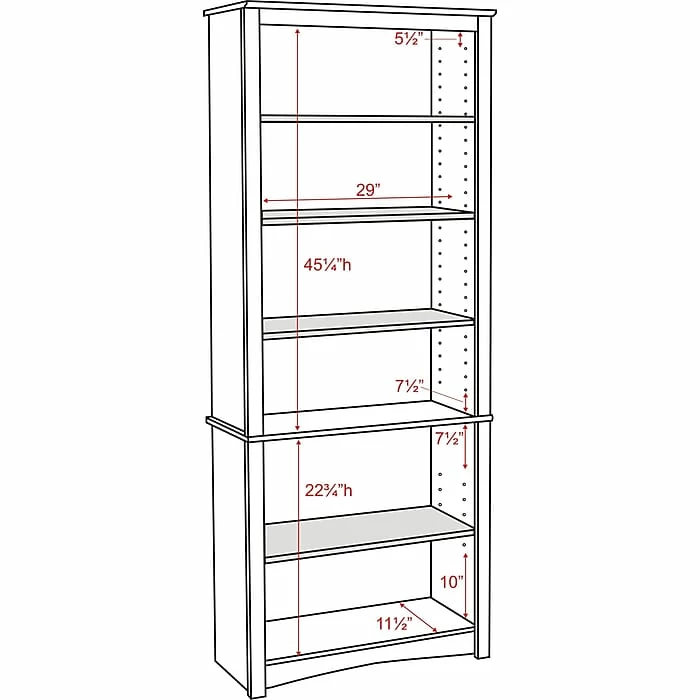 Prepac™ Oak 6 shelf bookcase features two full-sized shelves with ample room to store books, baskets and other household items you need to organize. Bookcase has dimensions of 31.5″ x 77″ x 13″.