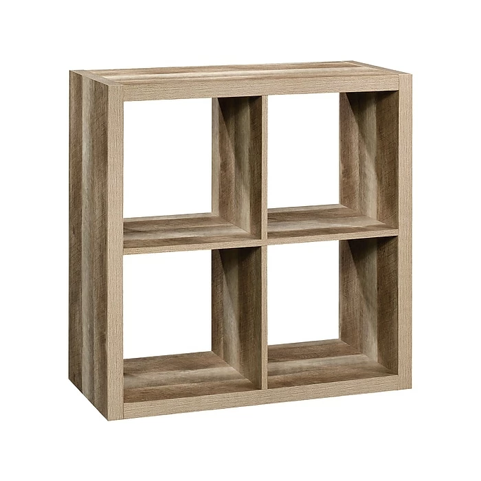 - Four-cube laminate bookcase in a lintel oak finish adds extra storage to your space