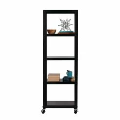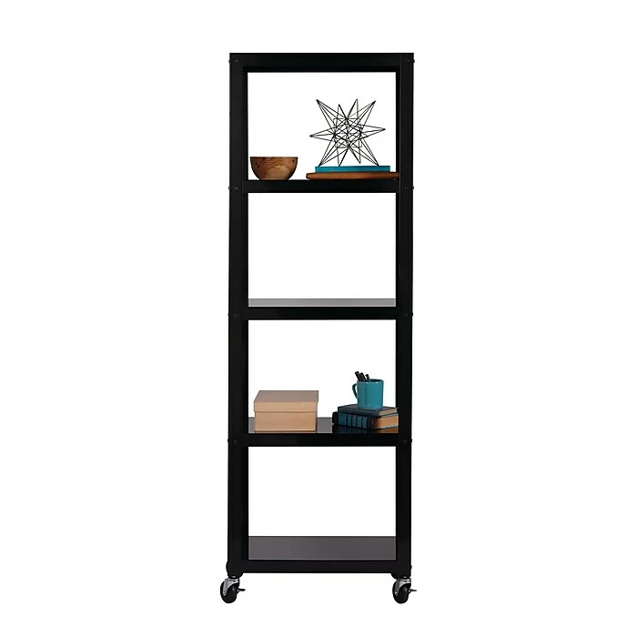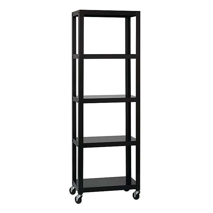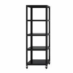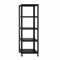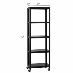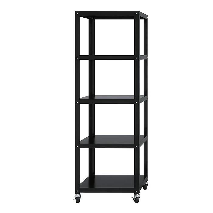 Space Solutions Industrial Modern Mobile 5-Shelf Etagere Bookcase available in Black and White is the perfect addition to your home office, dorm, craft room, and kitchen. Use it in your home to display pictures and keepsakes or use it in your office to hold your books and printer. Great for home entertainment storage too. This mobile bookcase’s clean and simple design integrates well in any home office or small office. Steel construction provides strength and support for long term use. Two locking casters keep the bookcase in place with mounting hardware included to attach to the wall if requested. Five shelves provide open space to store and display your belongings. Perfectly paired with Quill item 21113Q and 21114Q 48” Wide Mobile Metal Desks. Assembly required, Hardware Included. 72″H x 24″W x 14″D.