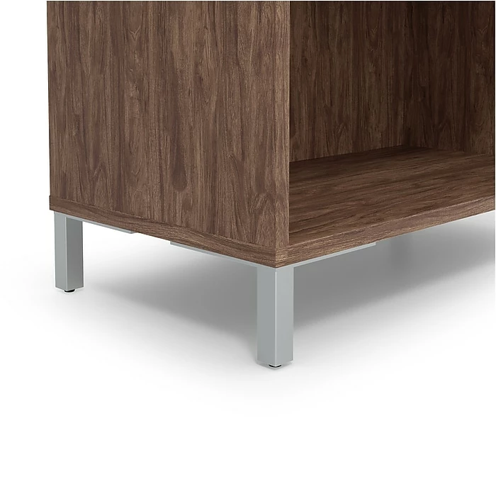Create fresh, modern efficiency in your small office or cubicle with this three-shelf bookcase. The height-adjustable shelves let you store a multitude of items, while the grommet enables easy cable management, keeping your working space clutter-free. Featuring a small profile, the bookshelf fits well in cubicles or shared office spaces. With a rich finish and a simple silhouette, this Union & Scale⢠Essentials espresso three-shelf bookcase matches other pieces in the line for streamlined productivity.