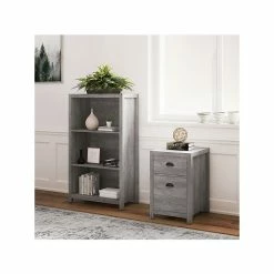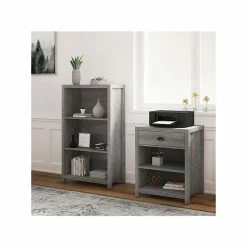 - Standard bookcase provides plenty of storage space, made of durable laminate, and comes in smoked ash/rustic warm gray finish